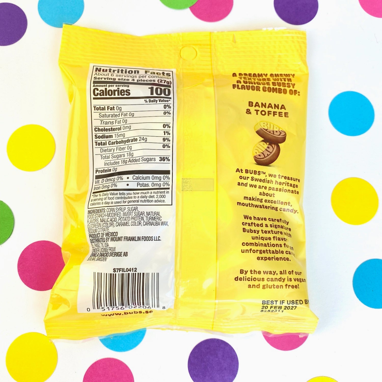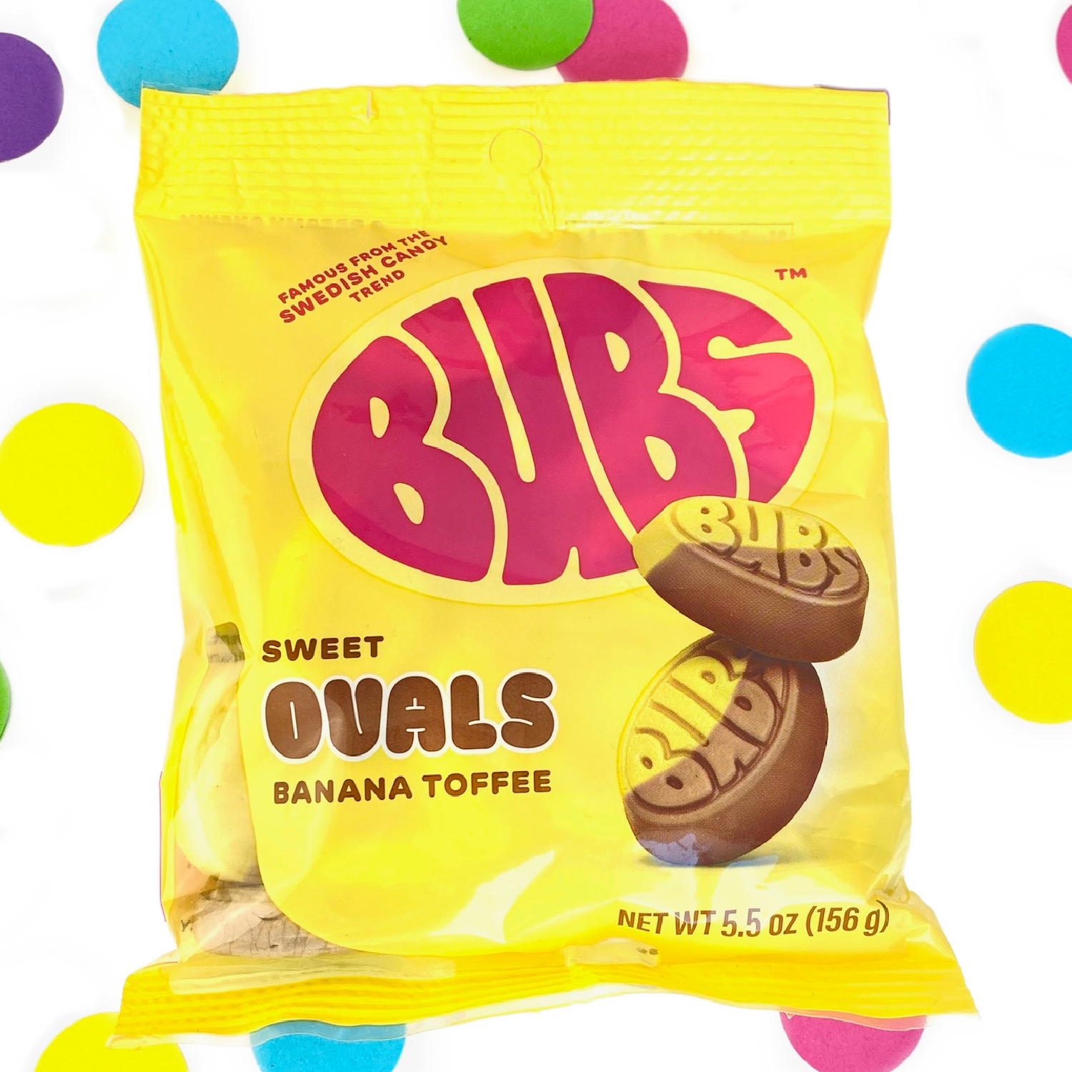 BUBS Swedish Candy Banana Toffee Sweet Ovals Foam Gummy Candy 5.5 oz bag